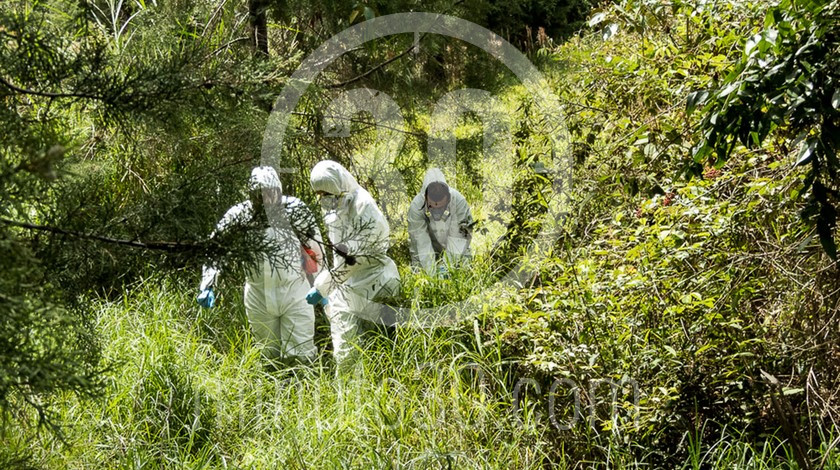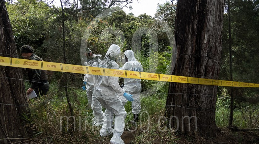 Al llegar al lugar, expertos en criminalística descubrieron el cuerpo que tenía una bolsa plástica negra alrededor del cuello, y dos orificios causados con arma de fuego: uno en la zona mamaria izquierda y el otro en el lado izquierdo del abdomen.