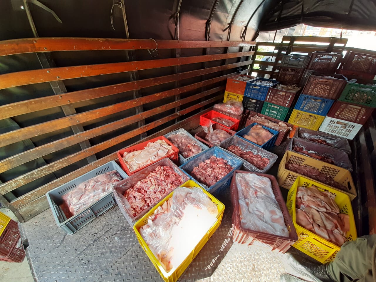 La Policía Ambiental evidenció que estos productos cárnicos y sus derivados no contaban con el registro sanitario, procediendo a incautar estos elementos hallados para luego trasladarlos a la Central Ganadera de la ciudad para su disposición final.