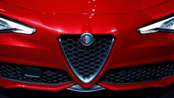 La parte delantera de un coche Alfa Romeo se muestra en la Feria del Automóvil de Nueva York 2017 durante el día de presentación a los medios en el Centro Jacob K. Javits en Nueva York (EE.UU.) El evento estará abierto al público del 14 de Abril al 23 de Abril de 2017. EFE