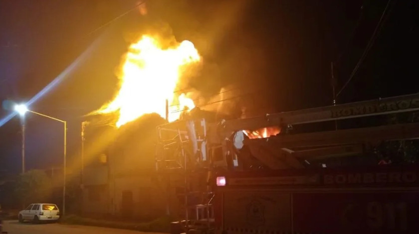 En zozobra y miedo terminó la noche de navidad para algunos habitantes del barrio Villa Luján, Tucumán, Argentina, luego de que un globo cayó en el techo de la colchonería y la quemó por completo.