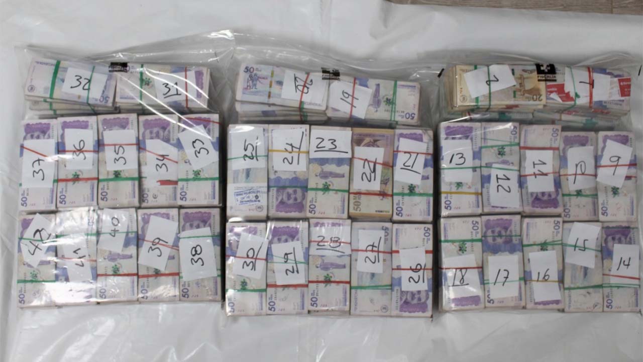 Este dinero estaba distribuido en 42 paquetes y habían sido guardados en el techo de la cabina, las puertas, la guantera central y el espaldar de la silla del copiloto.