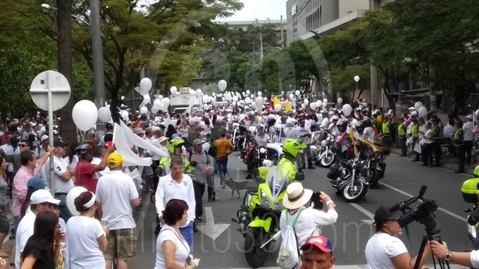 La manifestación en la capital antioqueña cuenta con la compañía del alcalde de Medellín, Federico Gutiérrez que se unió a la iniciativa y a través de su cuenta de Twitter invitó a los habitantes de la ciudad para que marcharan en rechazo del reciente atentado en la Escuela de Cadetes General Santander.