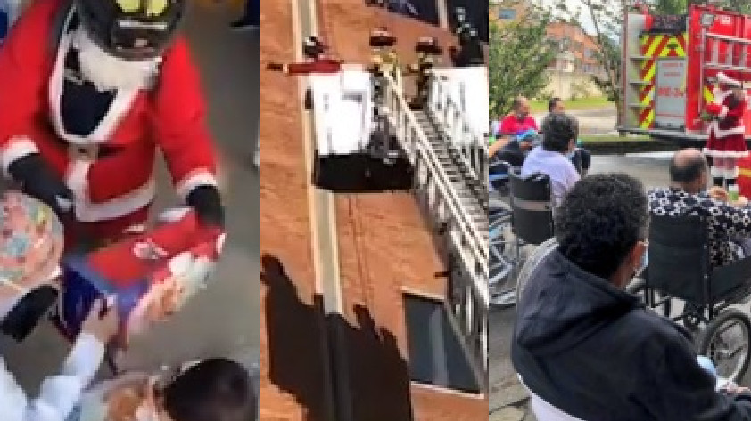 Un grupo de Bomberos de Bogotá se disfrazaron de Papá Noel para llevar alegría y regalos a niños y ancianos hospitalizados este 24 de diciembre.