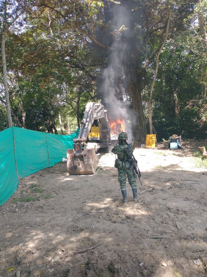 “En el lugar fueron destruidos tres excavadoras, un motor y demás elementos usados para la explotación ilícita. De esta manera, se afecta directamente al grupo delincuencial en alrededor de $1.225 millones al neutralizar la maquinaria y el equipo, con lo que se logra así salvar la fuente hídrica del río La Miel, la cual recibía diariamente sedimentos y sólidos en suspensión sin ningún tipo de control”, detalló el Ejército en un comunicado.