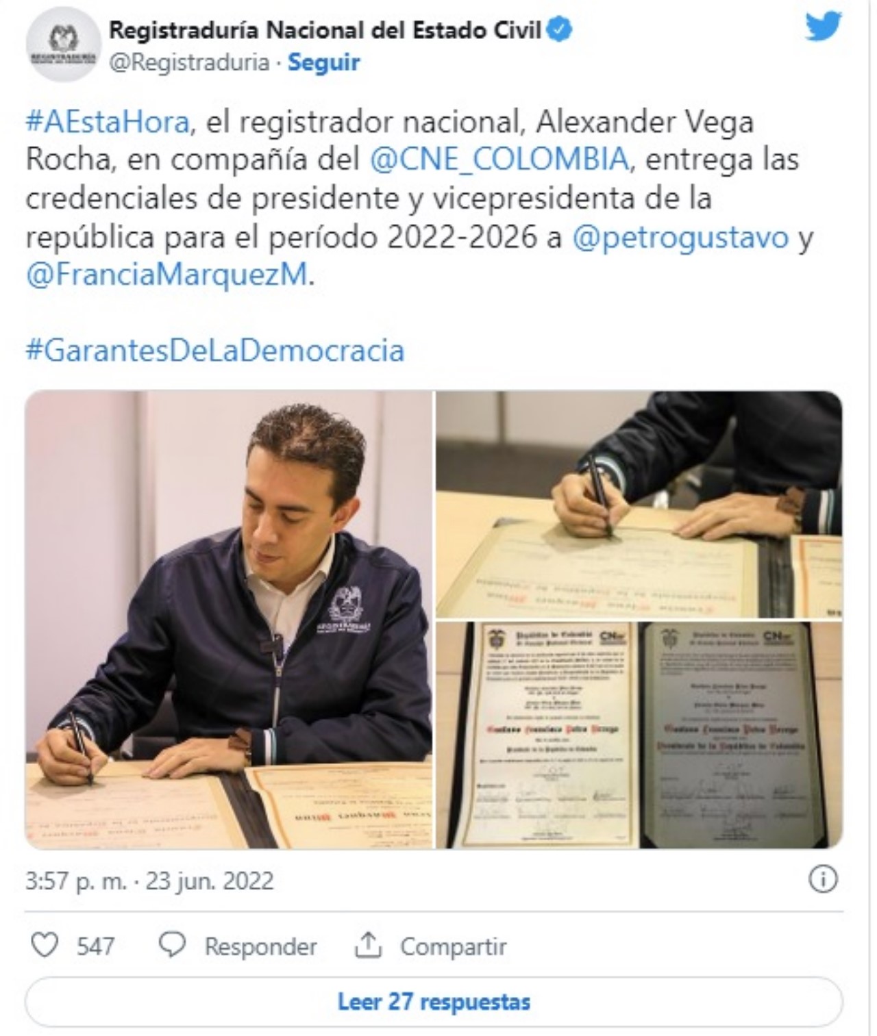 En redes sociales han viralizado el momento en el que Francia Márquez recibió su credencial, empezó a bailar al ritmo musical que entonaban los asistentes en la sede de la Registraduría Nacional. El pasado jueves 23 de junio, Francia Márquez junto a Gustavo Petro recibieron sus credenciales como vicepresidenta y presidente de Colombia electos. Francia, […]