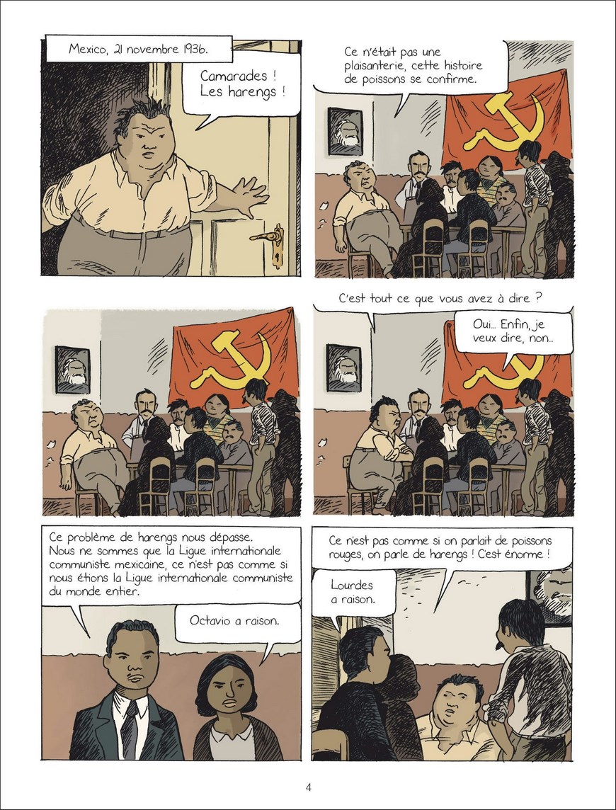 Las 128 páginas del álbum, rematadas por una reseña biográfica, parten de los tres años que Trotski pasó exiliado con su esposa en Ciudad de México, desde 1937 y hasta su asesinato en 1940 a manos del agente soviético español Ramón Mercader.