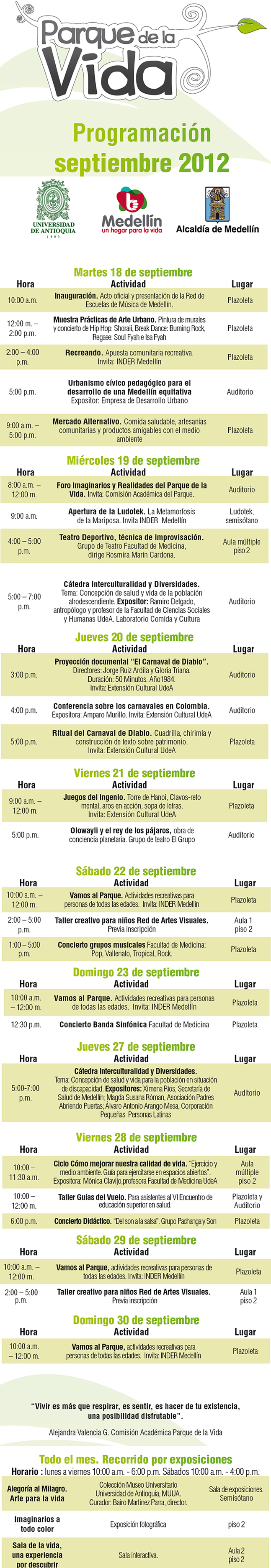 Minuto30.com .- El Parque de la Vida es una alianza entre la Alcaldía de Medellín y la Universidad de Antioquia, que hace realidad un espacio abierto a la ciudadanía para la promoción de la salud, la calidad de vida y el desarrollo humano.