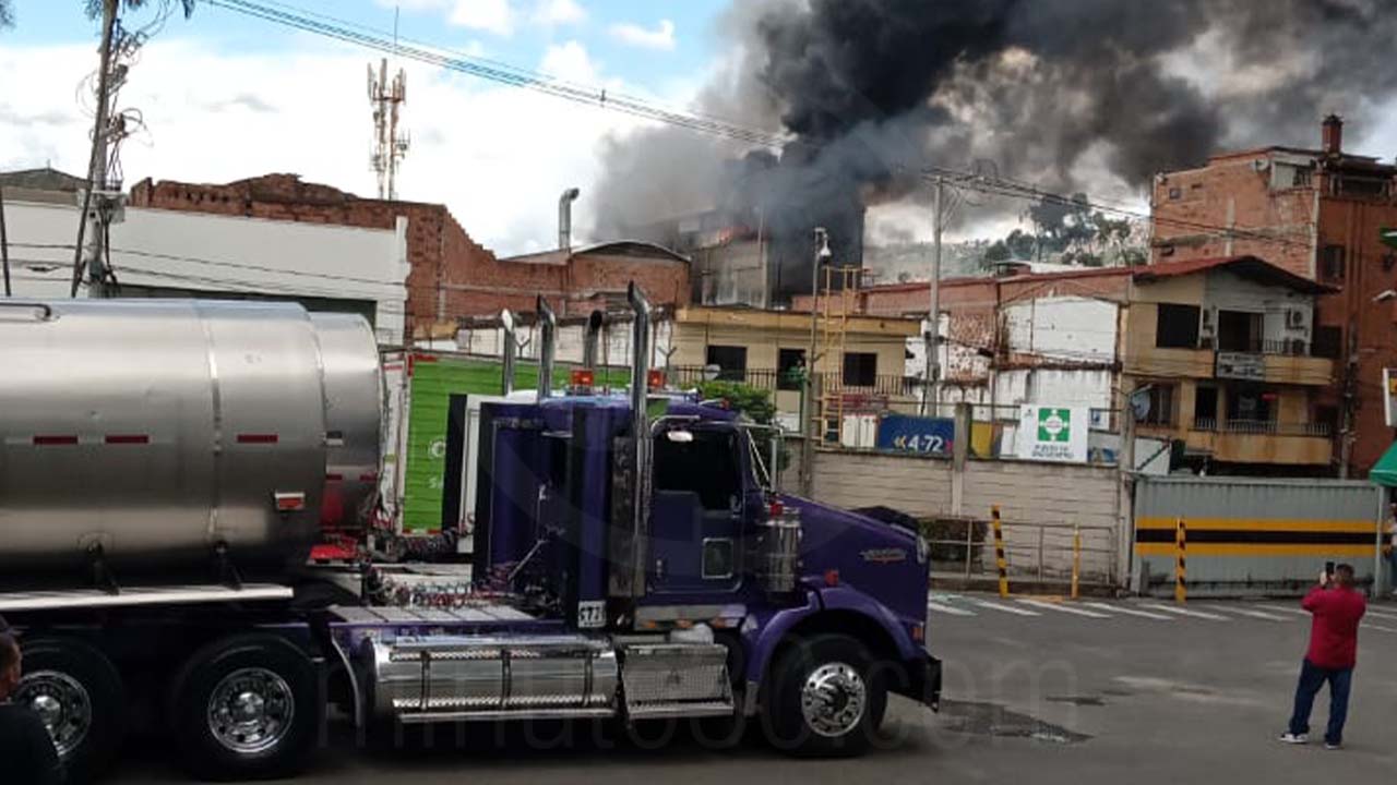 Sobre las 3:20 de la tarde de este martes 15 de agosto, se presentó un fuerte incendio en el barrio Caribe a una cuadra de la empresa Colanta y el Transito de Medellín.