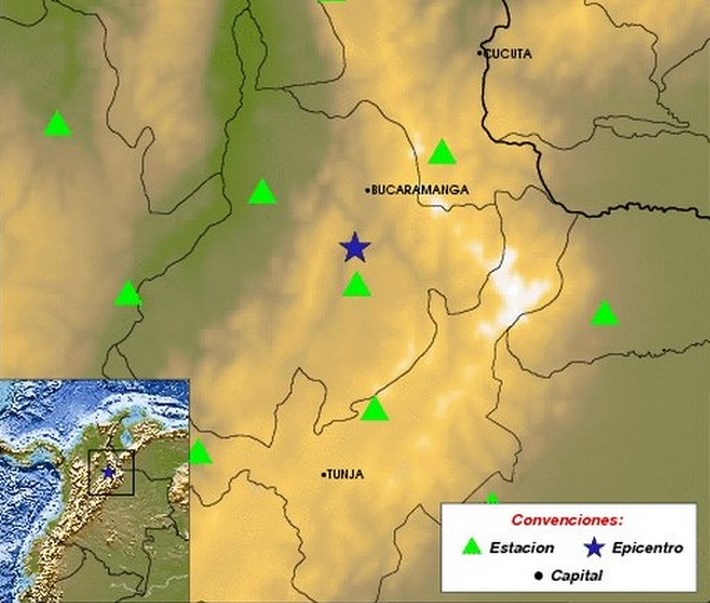 El Sistema Geológico Colombiano precisó a través de un comunicado que el sismo se registró a las 7:09:26 a.m hora local a una profundidad de 151,3 kilómetros y se sintió con gran intensidad en los municipios de Los Patios, Bucaramanga, Floridablanca, Piedecuesta, Encino, Segovia, San Vicente de Chucurí, Medellín, Yarumal, Tunja, Sogamozo, Cúcuta.
