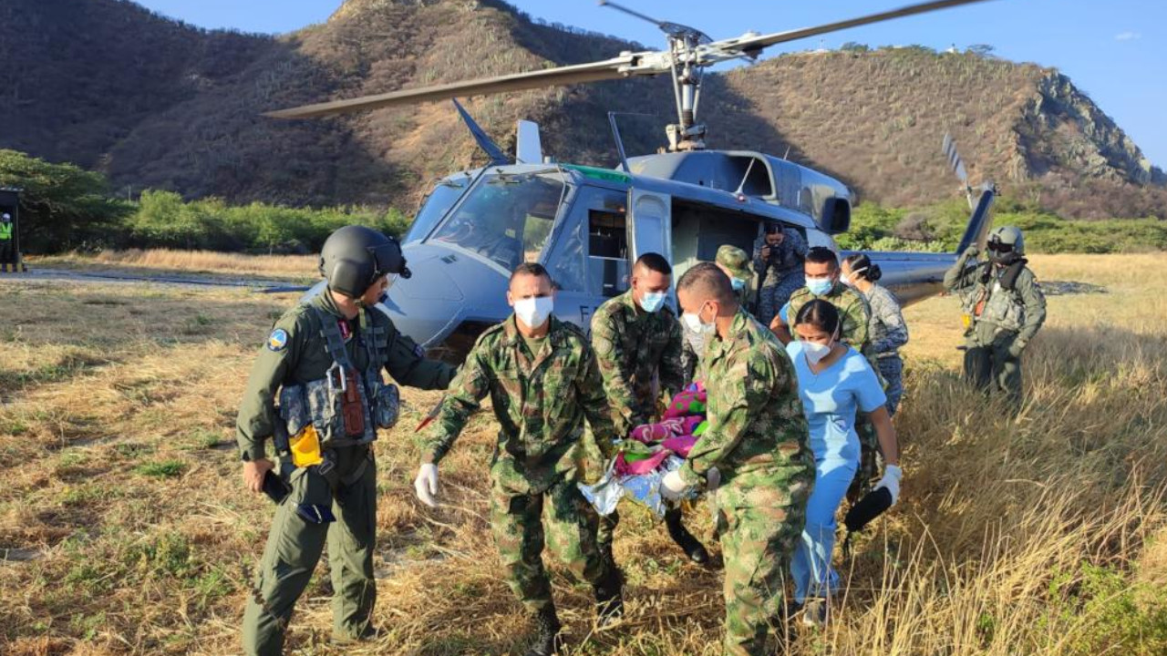 En el desarrollo de esta misión se contó con el apoyo de las tropas de la Primera División del Ejército Nacional, ubicada en la ciudad de Santa Marta, a donde llegó la aeronave y lugar en el que era esperada por una ambulancia, que la movilizó al centro médico.