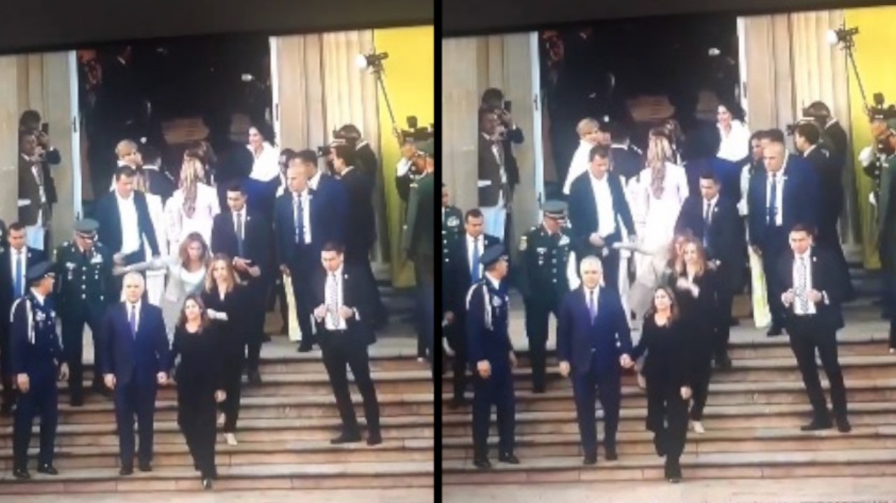 Uno de los momentos que llamó la atención en redes sociales fue cuando Gustavo Petro y su familia estaban ingresando a la Casa de Nariño e Iván Duque salía.