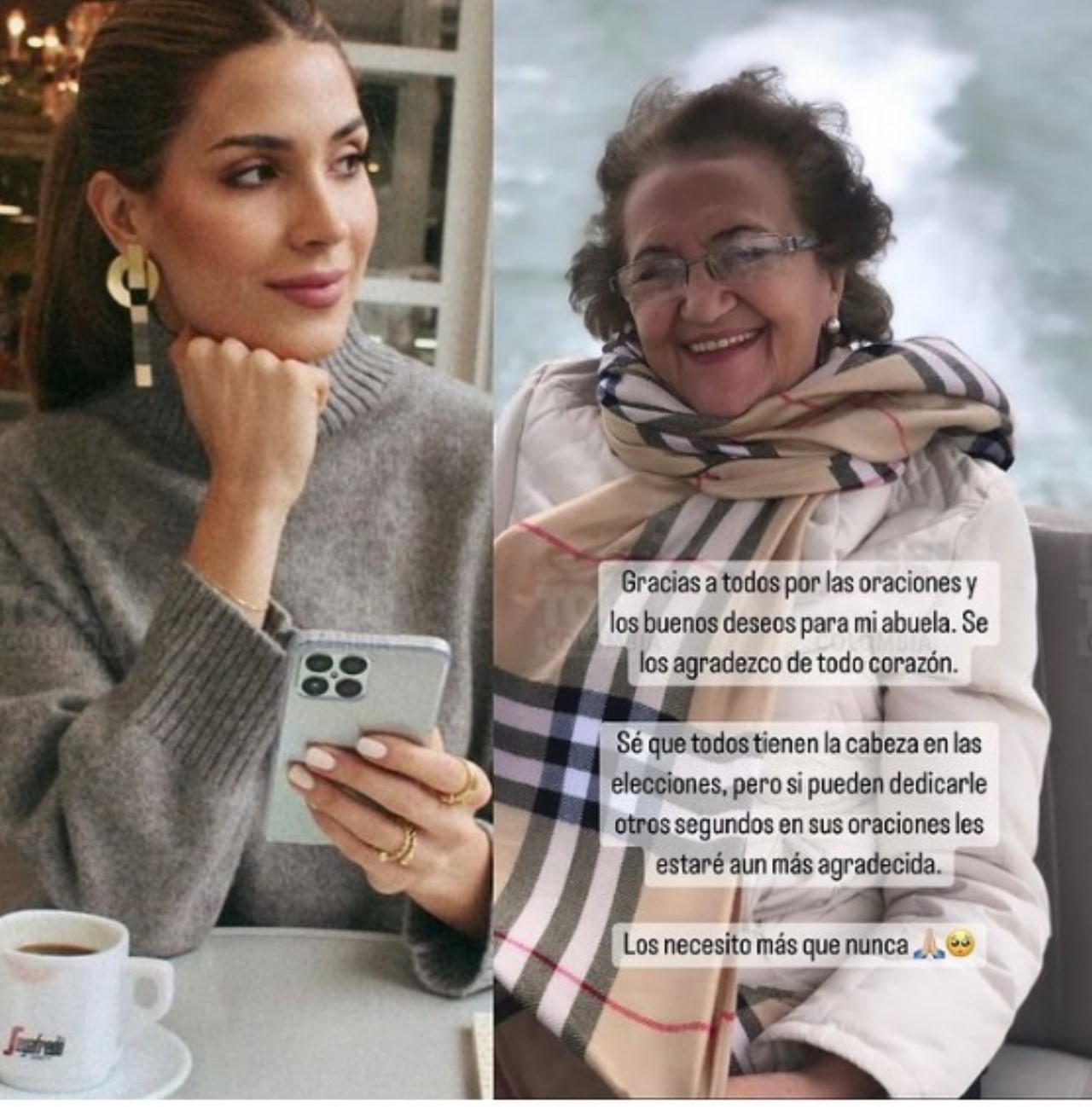 “Yo sé que es estado ausente durante varios días. Todo se debe a que como familia hemos estado pasando por una situación muy complicada porque mi abuela está en cuidados intensivos y está entubada. Ya me siento mejor, estamos contentos porque ha mostrado mejoría, de cierta forma esas oraciones de ustedes y esa buena energía han surtido frutos y mi abuela cada vez está mejor, ya está despertando de los medicamentos” dijo Gabriela Tafur hoy en su Instagram.