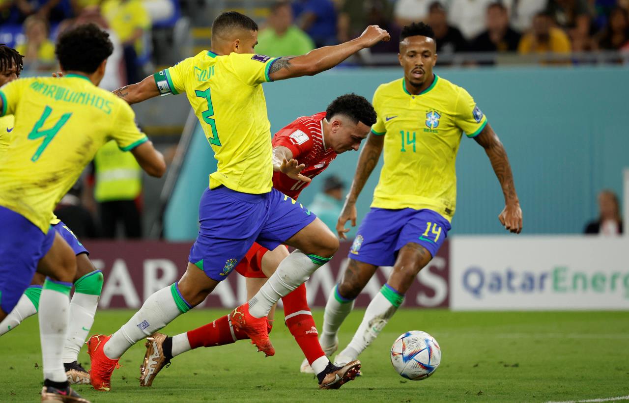 En este contexto de sopor, en el que solo Raphinha y muy poco de Vinícius brillaba, Suiza aprovechó la descompostura para mandar avisos. Primero en un balón muerto en un córner en el que Rubén Vargas se escabulló de Thiago Silva, antes de que Alisson le arrebatara la pelota, y más tarde cuando un pase de 30 metros encontró a Widmer dentro del área. El lateral suizo se acomodó la pelota y buscó un pase de la muerte que desactivó Militao.