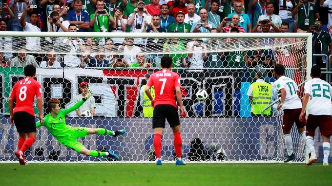 El árbitro no dudó. Y Vela, el lanzador, tampoco, ya que engañó al guardameta surcoreano y puso por delante a su equipo ante la euforia de la hinchada (m.27).