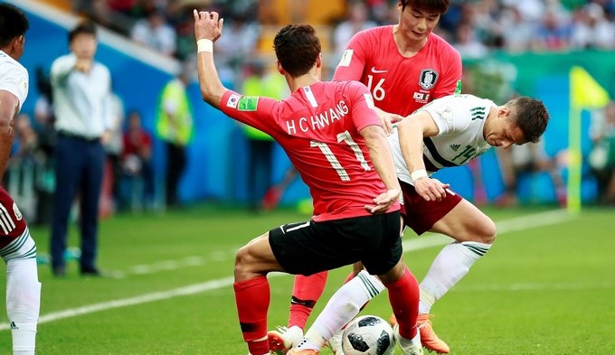 Pero más clara fue la primera ocasión de los coreanos tras una buena incursión por la izquierda de Hwang, cuyo centro no pudo ser aprovechado por Lee, ya que se le adelantó in extremis un defensa mexicano.