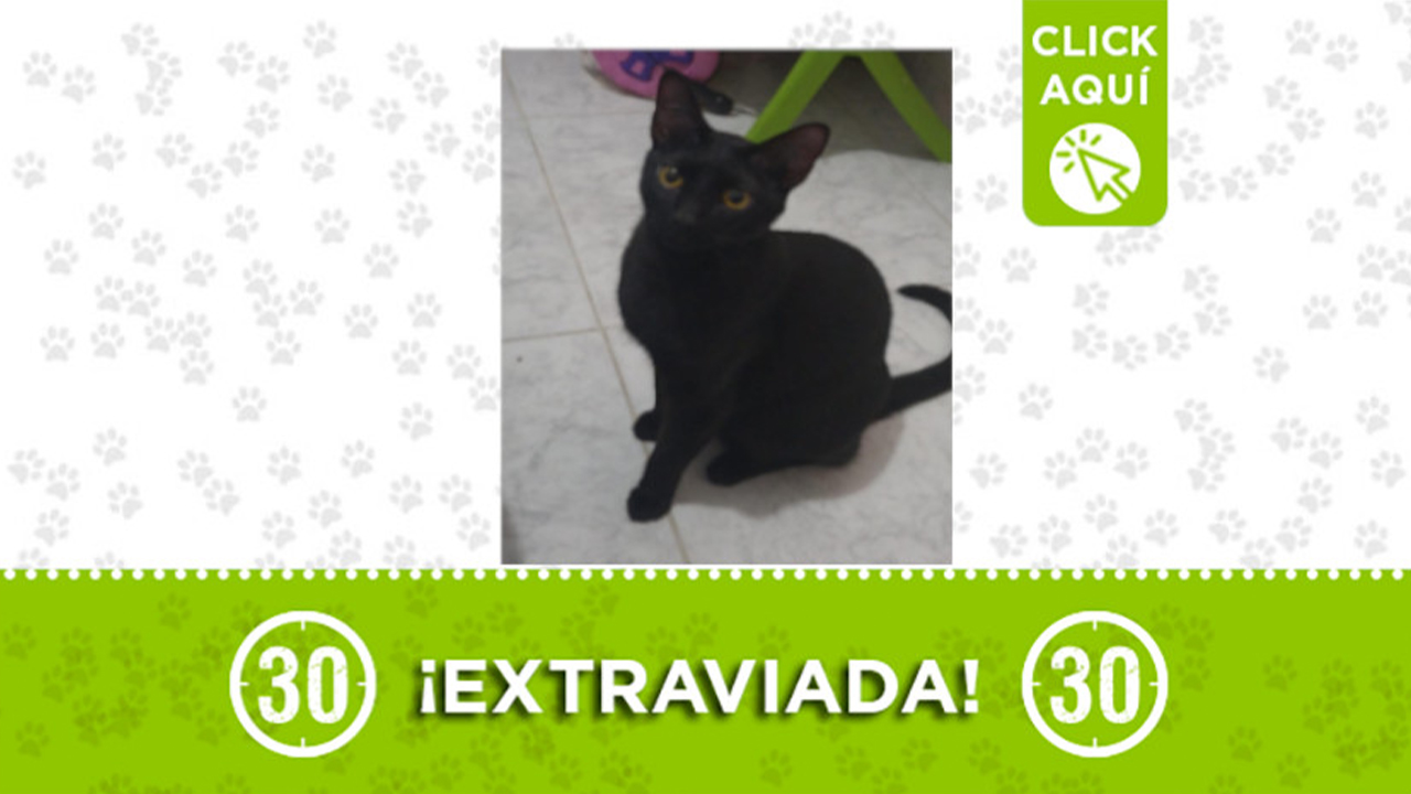 La gatita tiene dos años. Es de color negro con ojos anaranjados.