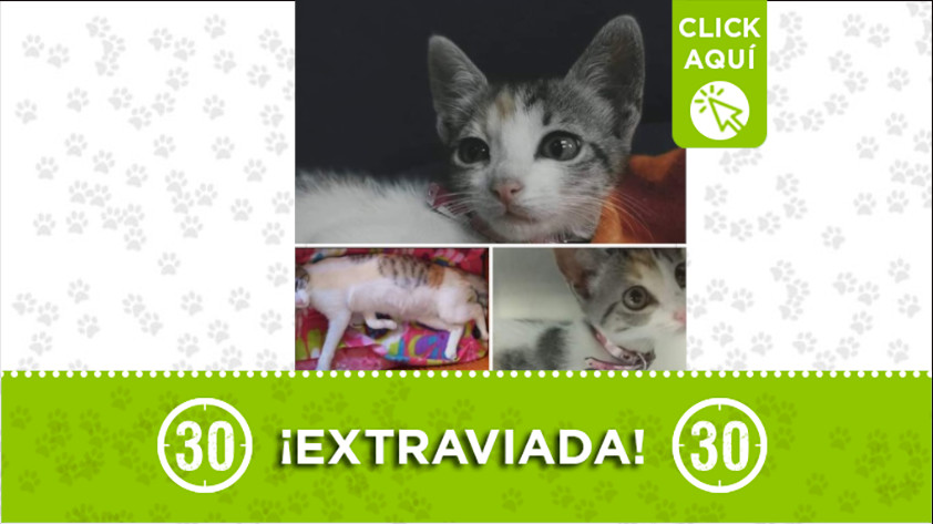 Esta gatica se perdió en el centro de Medellín, en el sector conocido como El Hueco. Si usted la ha visto por favor llamar al número: 3103920274. ¡Difunde!
