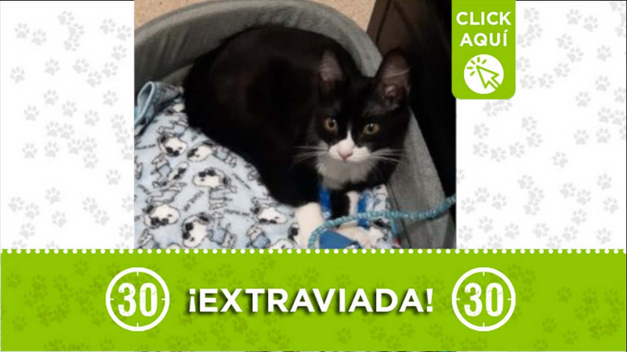 Esta gatica se perdió en el barrio San Pío del municipio de Itagüí, Antioquia.