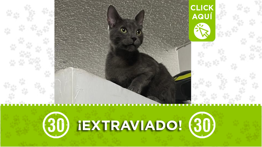 Este hermoso gatico llamado ‘Franklin’, se perdió en el barrio Los Colores, el sábado 18 de noviembre.