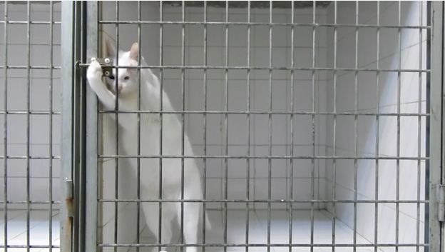 gato escapa de jaulaLas imágenes fueron captadas con una cámara de vídeo que ubicaron  los propietarios de la clínica luego de encontrar al gato en varios ocasiones fuera de su jaula.