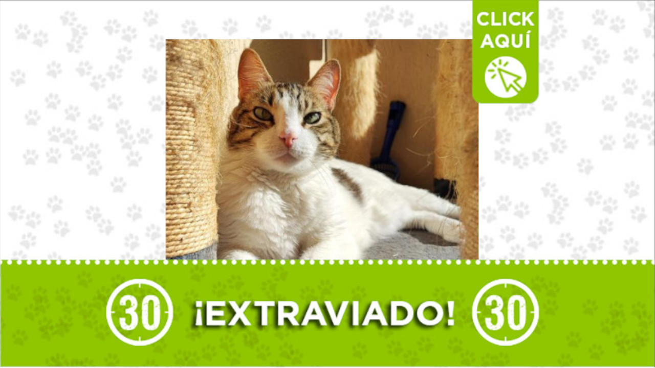 Este amiguito gatuno se perdió el 28 de marzo en Robledo, El Diamante.