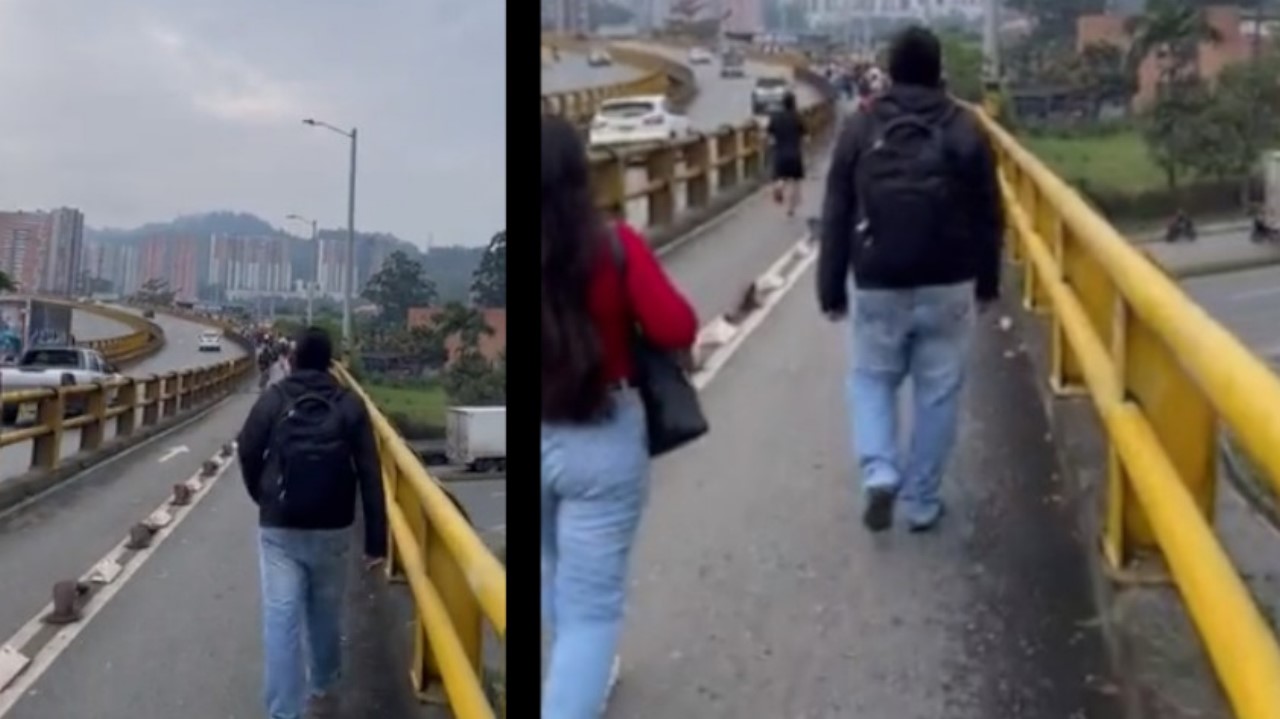 “Las personas caminando para llegar a la estación metro Estrella, porque los taxistas no permiten la llegada de los buses hasta la estación”, escribió un usuario de Twitter mientras dejaba ver a algunos ciudadanos caminando por el puente de la 77 Sur que une a Sabaneta, La Estrella e Itagüí.