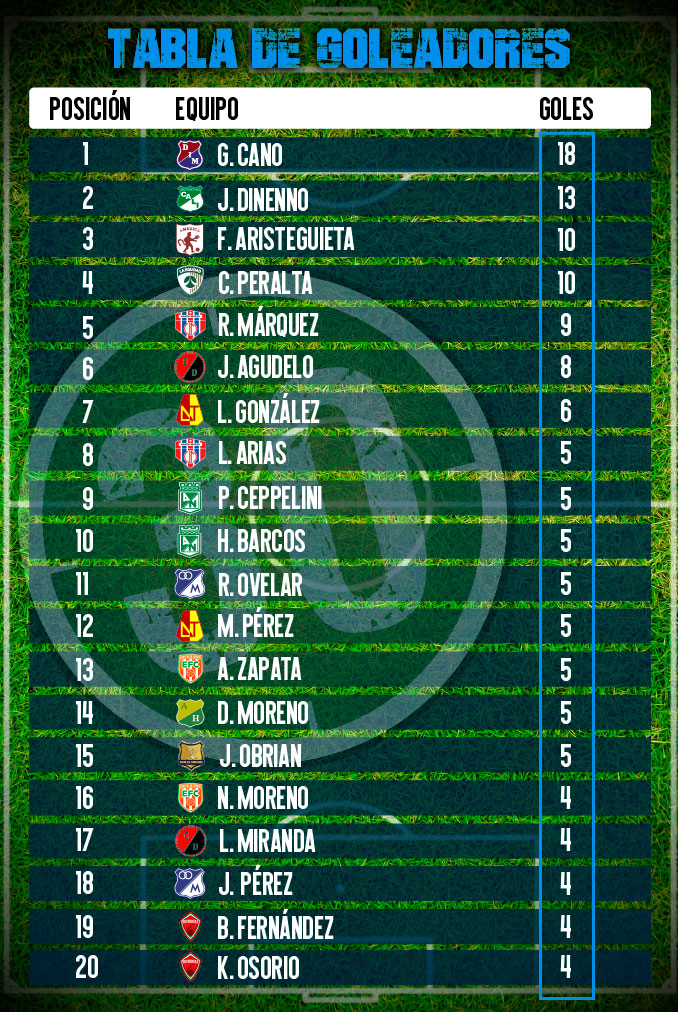 Así las cosas, dado que el chance del ‘Equipo del Pueblo’ de meterse entre los ocho es mínimo, Cano está obligado a aumentar su ventaja en el liderato de la tabla de goleadores en las dos fechas que restan del Todos Contra Todos, para evitar que en los cuadrangulares Dinenno, Fernando Aristeguieta u otro de los que viene detrás, lo sobrepasen y le quiten el honor de obtener de nuevo el botín de artilleros del campeonato colombiano.
