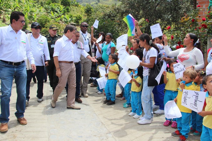 Los anuncios los hizo en el marco de la entrega de 1,6 kilómetros más de red vial terciaria pavimentada, esta vez en la vereda Los Alticos de San Jerónimo, en el cual se han entregado 8,6 kilómetros de estas vías pavimentadas y este sábado se firmó el convenio para pavimentar 5 kilómetros más.