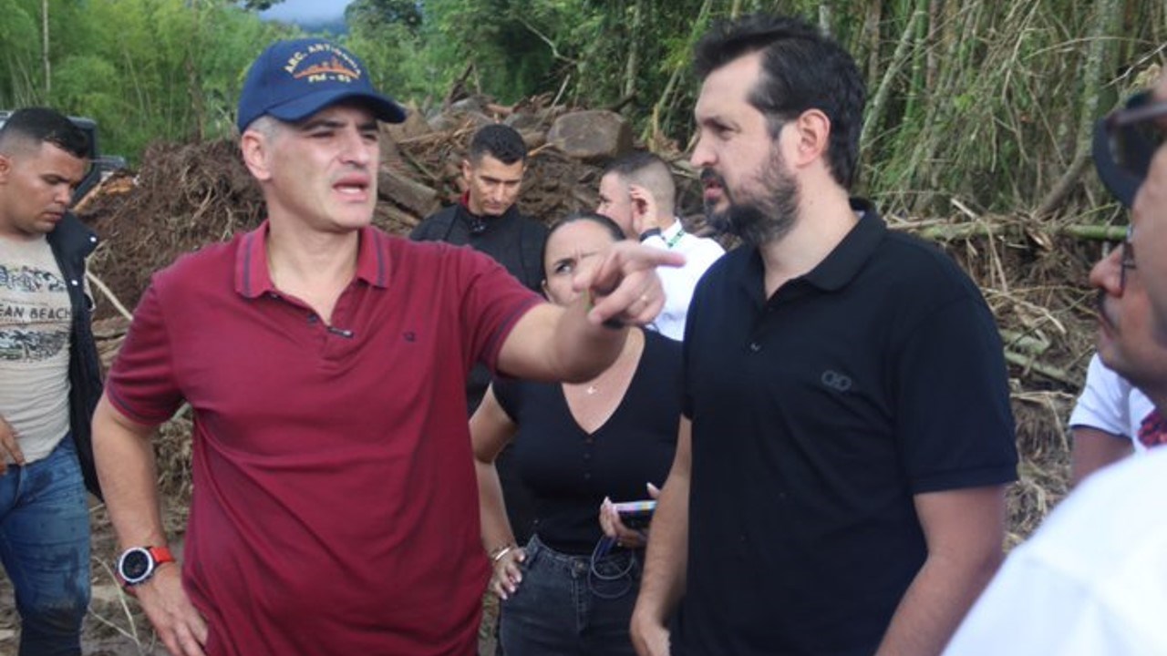 El secretario de Infraestructura, Horacio Gallón llegó hasta Abriaquí para atender la emergencia ocurrida por las fuertes lluvias que dejó tres personas muertas y el bloqueo por deslizamiento de la vía que comunica con Frontino.