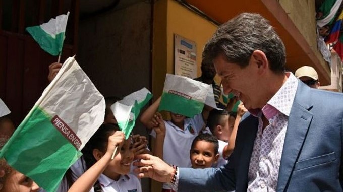 Luis Pérez, gobernador de Antioquia, entregando obras en Betulia. Foto: Twitter @GobAntioquia