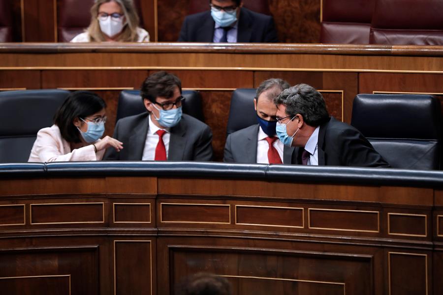 El ministro de Sanidad, Salvador Illa; la ministra de Política Territorial, Carolina Darias; y el presidente de la FEMP, Abel Caballero, han mantenido este miércoles un encuentro para abordar la implicación de los ayuntamientos en la respuesta frente a la enfermedad coincidiendo con la vuelta a los centros de trabajo tras las vacaciones y en vísperas del inicio del curso escolar,