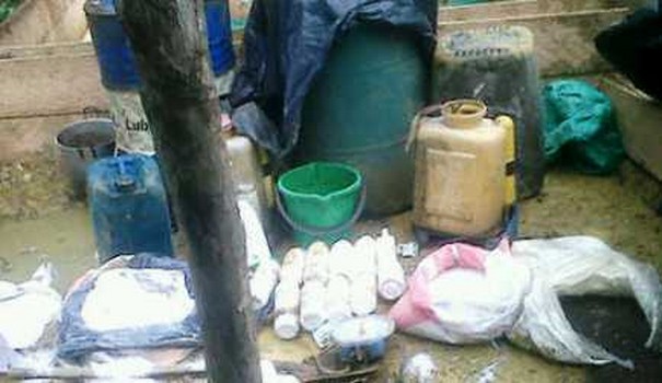 Continuando con los registros de área, en el mismo sector la tropa de Infantería de Marina localizó dos cocinas rústicas, con un campamento para alojar a 10 personas, así como 993 galones de insumos líquidos entre los que se encontraban gasolina, tiner, cloroformo y acetona; 225 kilogramos de insumos sólidos entre ellos cemento, urea, soda caustica, manganato de potasio y 380 galones de hoja de coca en proceso. En el lugar también se hallaron una motobomba, dos aspersoras y una bomba fumigadora.