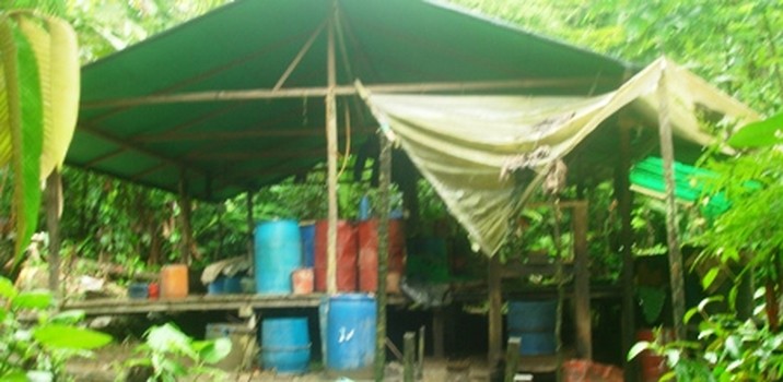 Por otra parte, en el sector conocido como quebrada Chontaduro, fue localizada y destruida una cocina rústica para el procesamiento de pasta básica de coca en donde se encontraron 242 galones de insumos líquidos, 50 kilogramos de insumos sólidos, una planta eléctrica, una prensa hidráulica y un revolver calibre 38 milímetros.