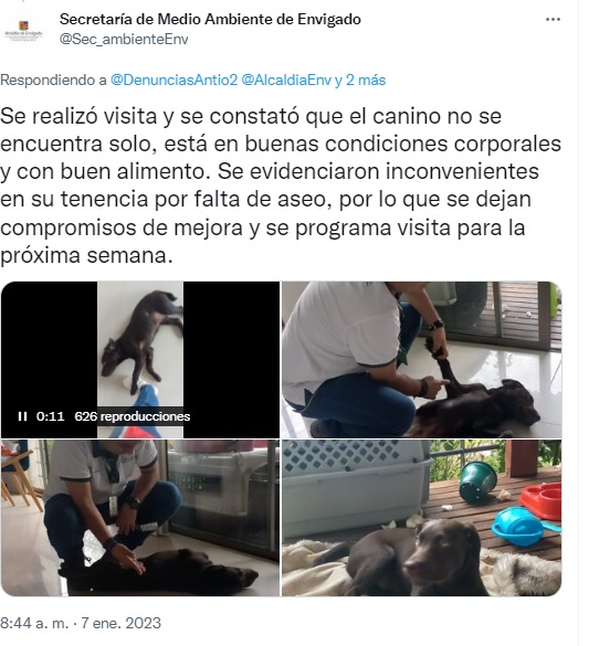 Pues bien, la mañana de este sábado, 7 de enero, la autoridad ambiental reportó que visitó el sitio donde estaba el animalito y afirmó, “se constató que el canino no se encuentra solo, está en buenas condiciones corporales y con buen alimento. Se evidenciaron inconvenientes en su tenencia por falta de aseo, por lo que se dejan compromisos de mejora y se programa visita para la próxima semana”.