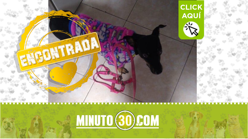 Esta perrita estaba perdida desde el día miércoles 4 de marzo en el sector de Andalucía La Francia. “Simona” ya se encuentra con sus dueños. Buscamos a Simona, una pincher que se perdió por Andalucía La Francia ¡Gracias a tu ayuda!