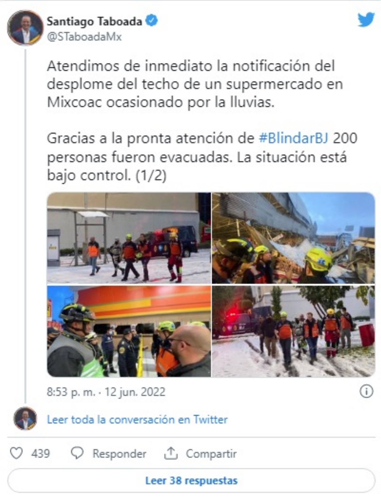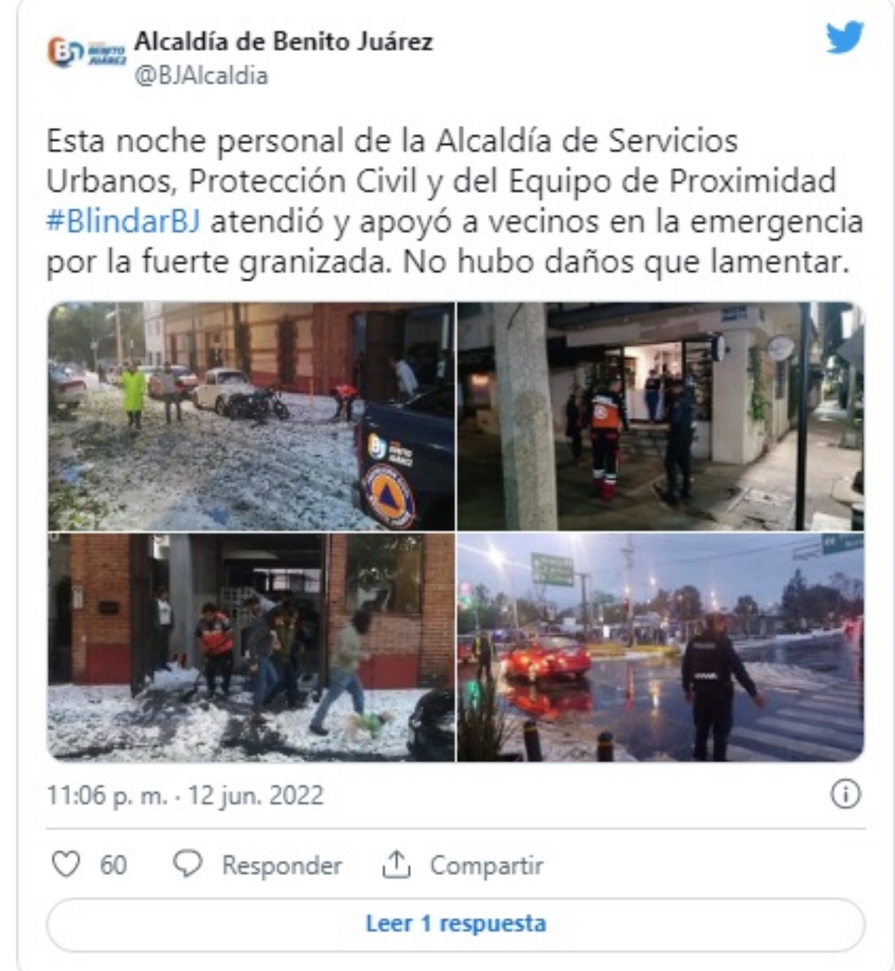 Media @BJAlcaldia colapsada por el granizo y el alcalde @STaboadaMx y sus CM ni un mensaje de de alerta o apoyo a la ciudadanía.