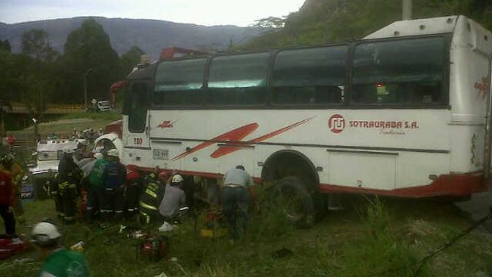 Accidente de bus, proveniente de San Jerónimo hacia Medellín, deja dos muertos. Imagen tomada de twitter @palaciotamayo