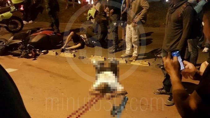 Al parecer, dos hombres que se movilizaban en una motocicleta colisionaron contra un vehículo.