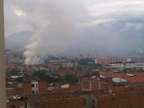 Desde muchos lugares de Envigado se observa la gran columna de humo que aun tiene el incendio del amanecer. @erikatobonrLa columna de humo que se ve desde diferentes puntos de la ciudad continúa después de doce horas