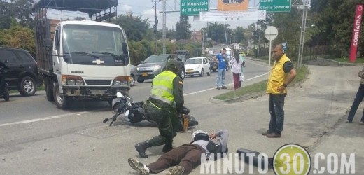 Minuto30.com-. Gravemente herido fue trasladado a un centro asistencial un motociclista que la tarde de este jueves colisionó con un camión a la entrada del municipio de Rionegro.
