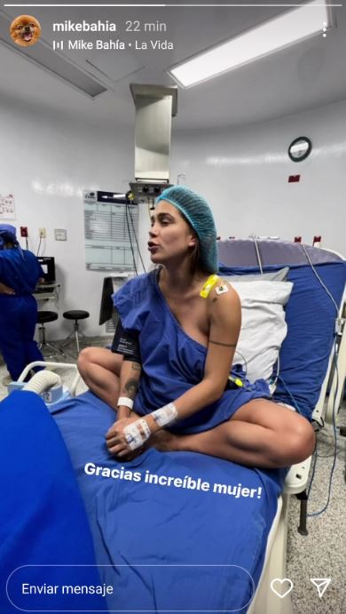 Mike Bahía también compartió en sus historias de Instagram una imagen de la nueva mamá que revolucionó las redes sociales.