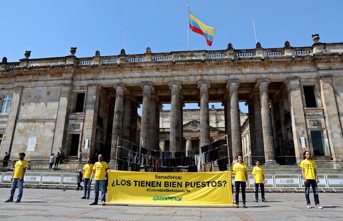 “Los senadores y senadoras tienen en sus manos la decisión histórica de favorecer, luego de años de fracasos legislativos, la salud del pueblo colombiano. El asbesto es un material que no puede seguir cobrándose víctimas, mientras unos pocos poderosos lo defienden con uñas y dientes”, dijo Silvia Gómez, coordinadora de Greenpeace Colombia.