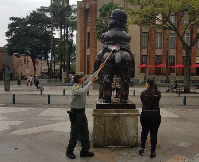 Minuto30.com- El Grupo de Protección al Turismo y Patrimonio Nacional del Área Metropolitana del Valle de Aburrá, en coordinación con funcionarios del Museo de Antioquia embellecieron las esculturas de Fernando Botero.