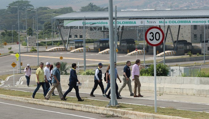 Ciudadanos procedentes de Colombia se preparan a cruzar el puente Simón Bolívar hacia Venezuela
