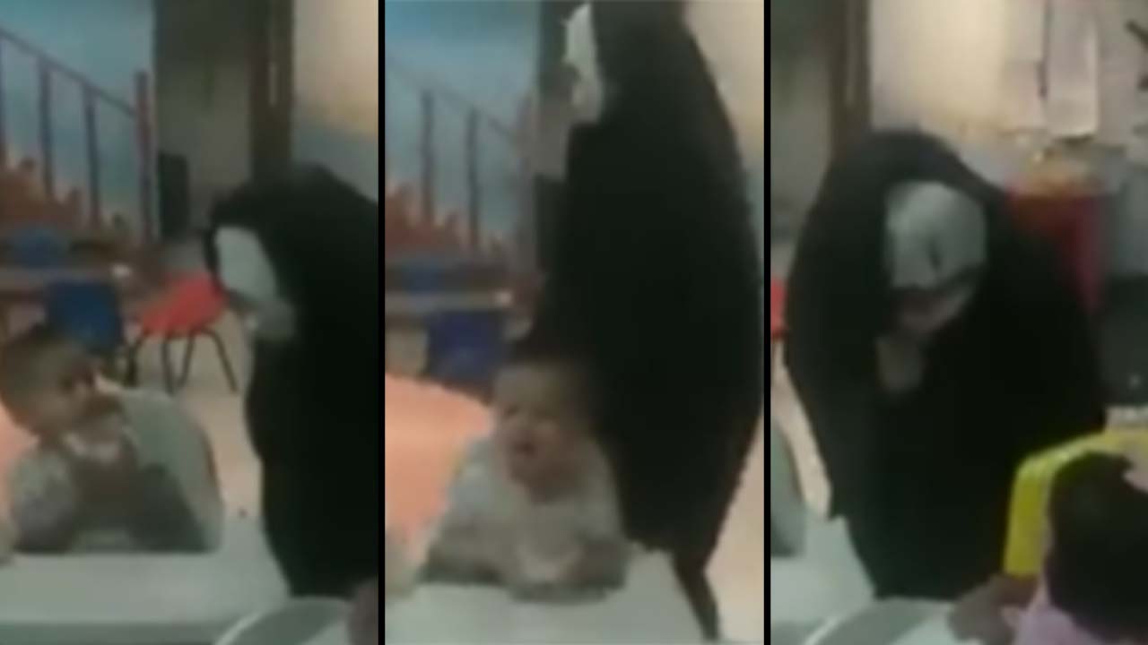 En redes sociales se ha viralizado un video que genera mucha indignación e impotencia y que unos bebés de guardería son asustados hasta llorar, por quienes serían sus profesores, los que llevan una máscara terrorífica.
