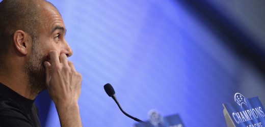 El entrenador del Bayern de Múnich, Josep Guardiola, ofrece una rueda de prensa en Múnich (Alemania) hoy, lunes 20 de abril de 2015. EFE