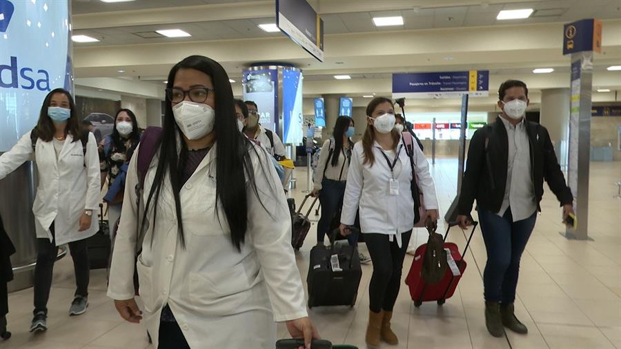 Este martes llegaron 21 médicos del Hospital Municipal Bicentenario de Guayaquil para ayudar en el improvisado centro médico homónimo de Quito, donde aportarán una experiencia acumulada durante los más dramáticos días a finales de marzo y principios de abril.