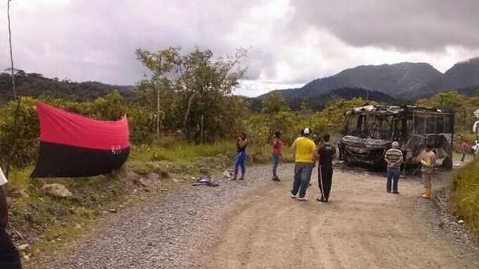 Minuto30.com.- Guerilleros del ELN incineran tres buses en la vía que de Quibdó conduce a Medellín, afectando el normal desarrollo de la jornada electoral en el Chocó.