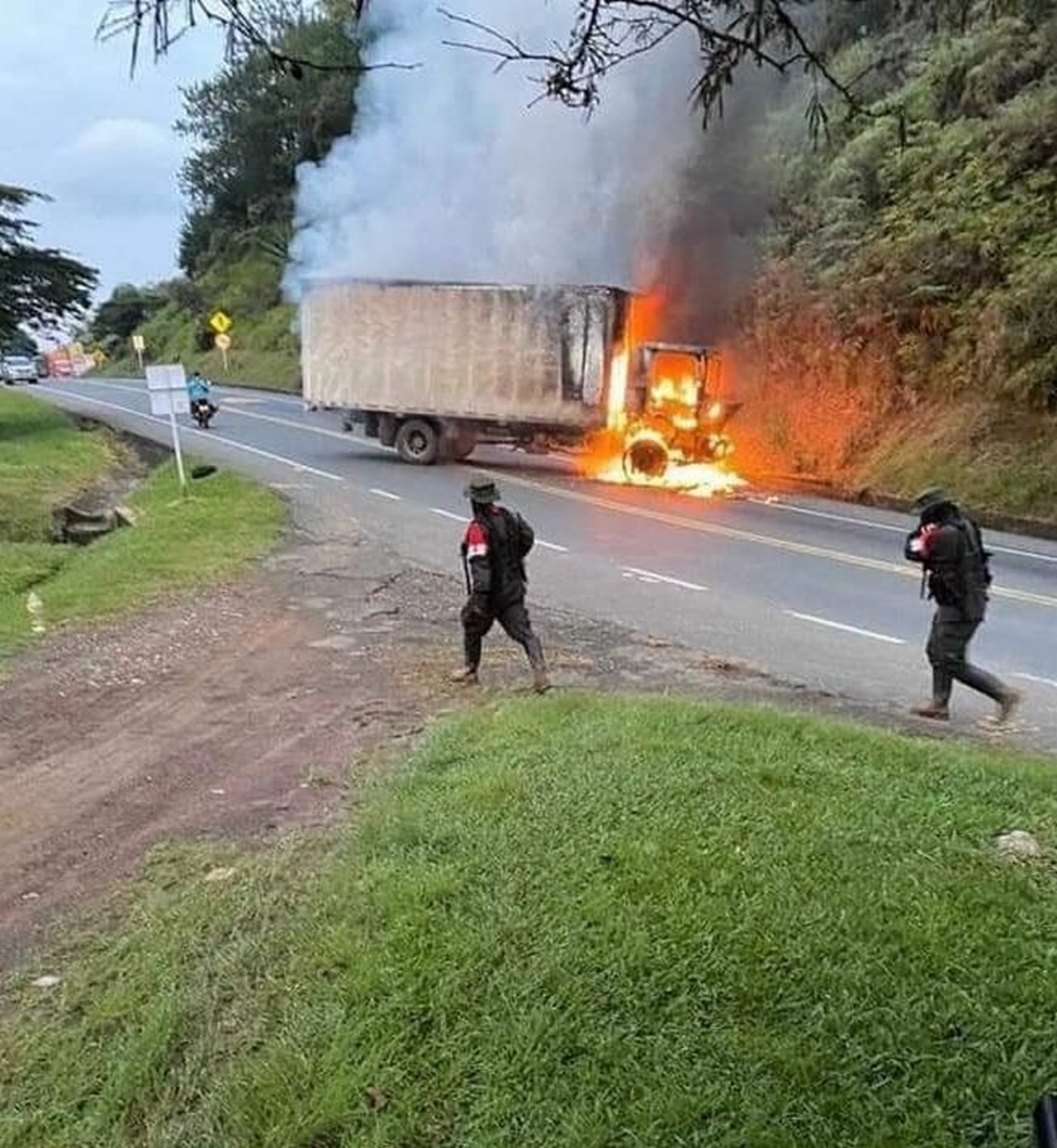 Hombres armados y con prendas alusivas al ELN, bajaron al conductor del camión y luego le prendieron fuego. Al parecer, se encuentran en el sector desde muy temprano.