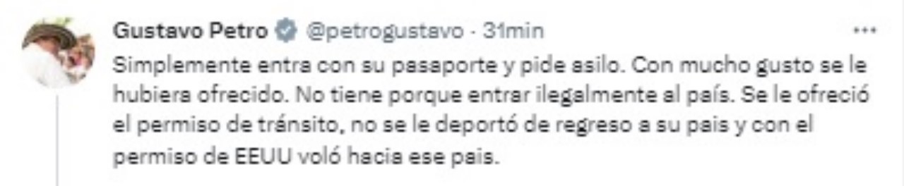 El presidente Gustavo Petro respondió a lo que ocurrió con Juan Guaidó a través de su cuenta de Twitter. Guaidó manifestó: “La persecución de la dictadura se extendió lamentablemente hoy a Colombia”.